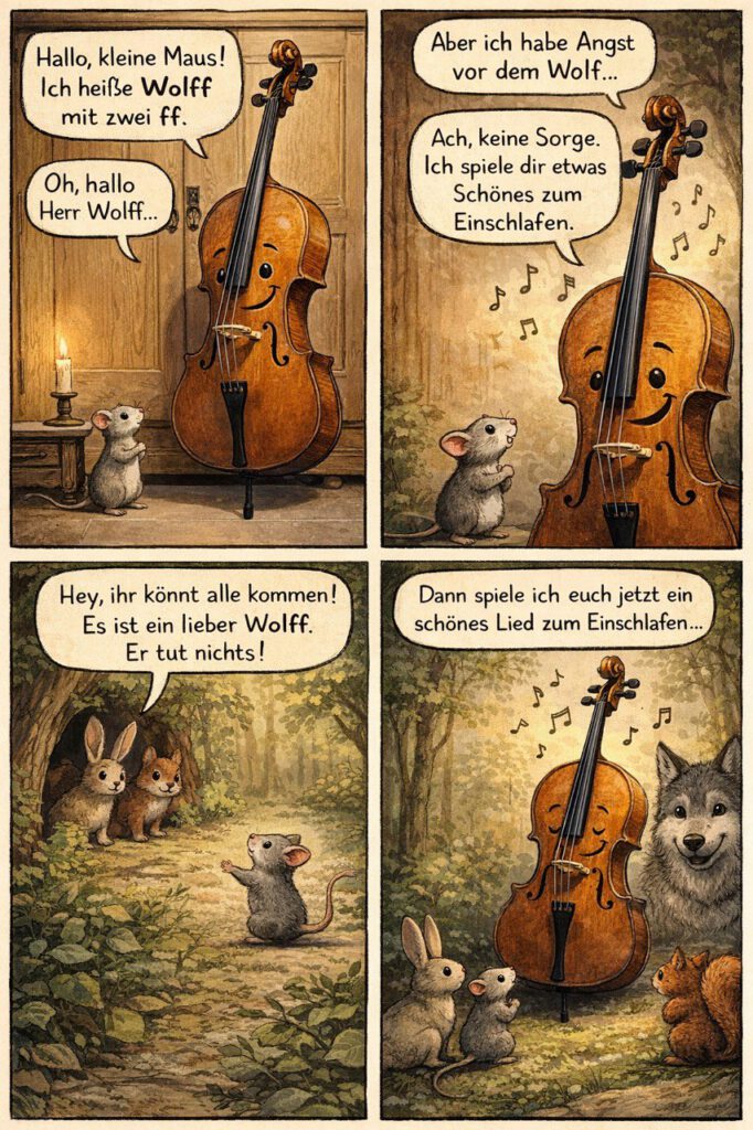 Bei der Gegenüberstellung des WOLFF alias Wolf mit dem Paessold alias kleiner Bär ging es um die Befriedigung der Sehnsucht nach mehr „Klangraum“ und „Klangcharakter“ sowie letztlich um den Wunsch nach einem gebrauchten Instrument. Hinzu kamen unerwarteterweise geschichtliche Aspekte zur Herkunft des Cellos, die die Entscheidung für mich zusätzlich spannend machten.